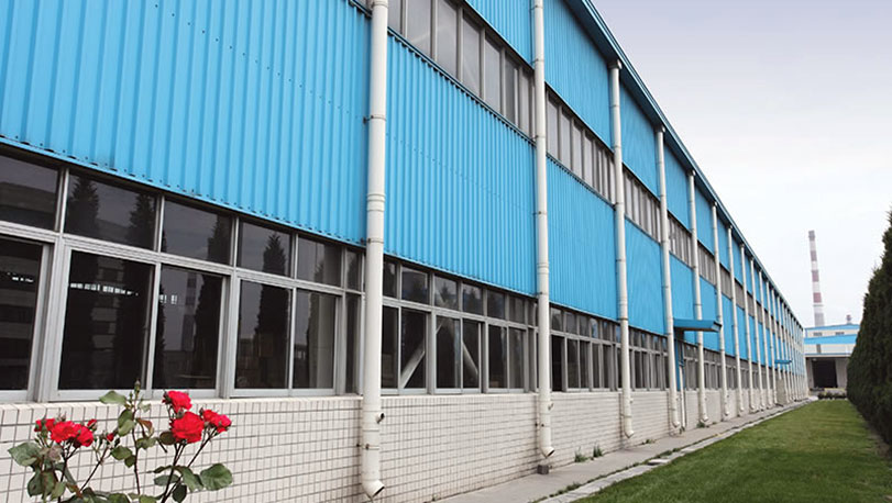 太倉工廠于2001年開始建設(shè)。采用寶鋼鍍鋅彩涂鋼板,涂層種類PE,顏色為海藍(lán),牌號(hào)為TSt01,鍍層重量180克/平方米。2011年檢測,外墻面涂層厚度20.5微米。