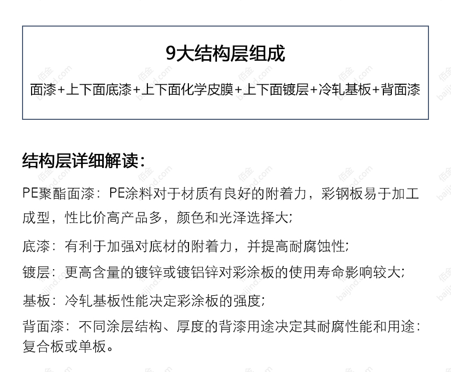 PE聚酯彩涂板附著力良好,在成型性和室外耐久性方面范圍較寬, 耐化學(xué)藥品性中等。廣泛應(yīng)用于普通工業(yè)廠房及倉(cāng)儲(chǔ)物流庫(kù)房的圍護(hù)系統(tǒng)中。