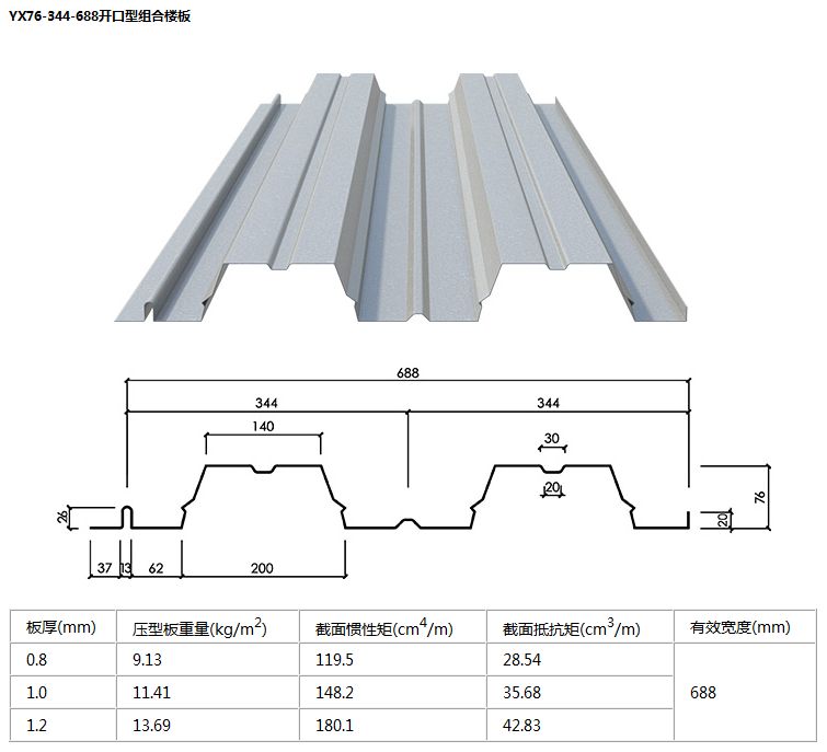 3:壓型板表面壓紋使樓承板與混凝土之間產生最大的結合力,使二者形成整體,配以加勁肋,使樓承板系統具有高強承載力。