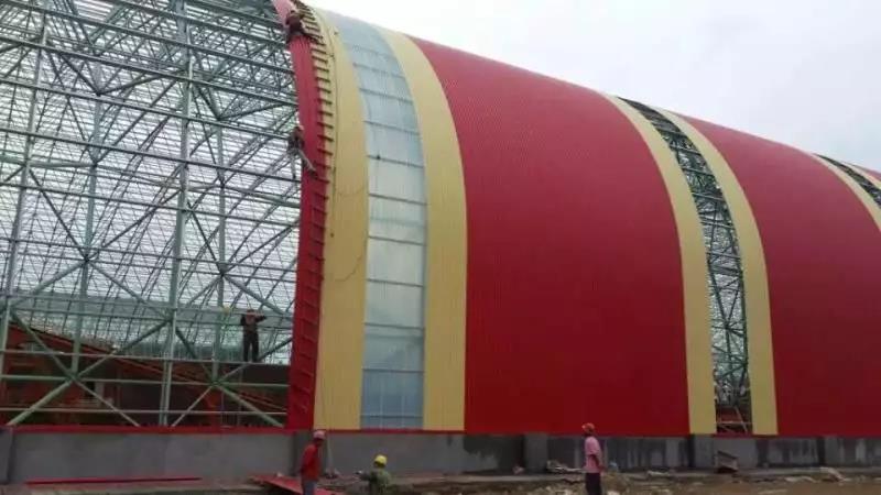 該項目位于明長城西端的甘肅省嘉峪關市,建筑面積約25萬平方米,工程由我司提供材料,其中0.6*1000寶鋼藍、白灰、天藍共計1200噸,自2013年建成以來涂層保持完整。