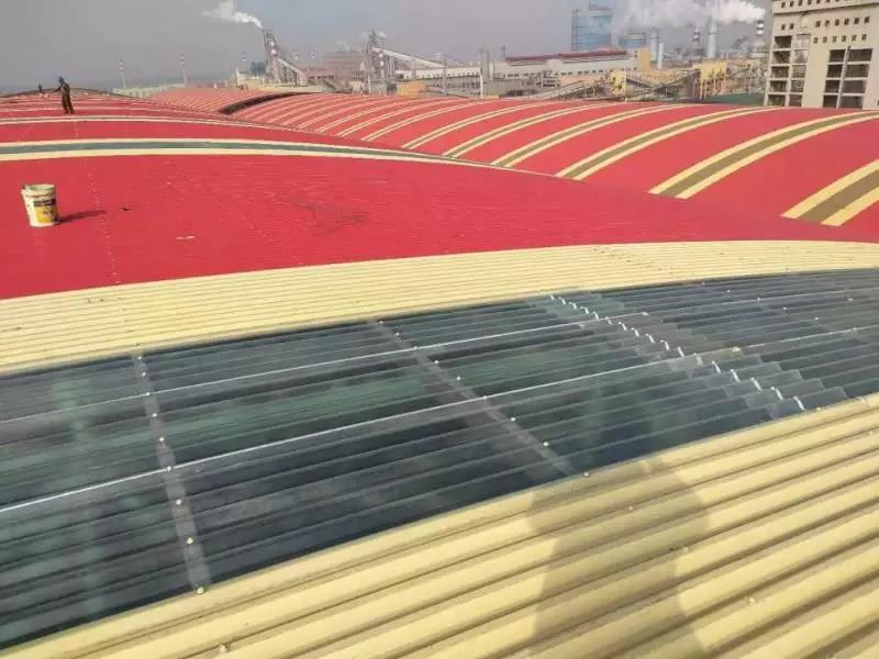 前期使用其他廠家彩涂產(chǎn)品,短時間內(nèi)多次發(fā)生銹蝕穿孔。后經(jīng)與寶鋼黃石公司聯(lián)系并邀請進行現(xiàn)場走訪,發(fā)現(xiàn)此批彩涂產(chǎn)品使用在煤氣發(fā)生爐區(qū)域,車間內(nèi)不僅屬高溫、高濕環(huán)境,還有二氧化硫等還原氣氛,鍋爐排放粉塵顆粒附著腐蝕較大,對產(chǎn)品耐蝕性提出更高的要求。經(jīng)與業(yè)主溝通,選用鍍鋁鋅基板,并提升背面膜厚及涂料種類(環(huán)氧改為氟碳涂層,背面漆膜≥20um),經(jīng)5年時間跟蹤,漆膜完整,大大增強了使用壽命,降低更換周期,得到業(yè)主認可。使用時間2013年,共計使用400噸。