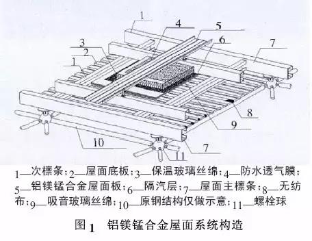 1.1 鋁鎂錳合金屋面系統構造典型的鋁鎂錳合金屋面系統構造,如圖1所示。