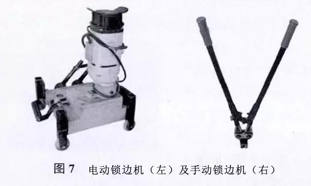 1)電動鎖邊機,用于鎖緊板肋,使板與固定座連結牢固,見圖7(左)。